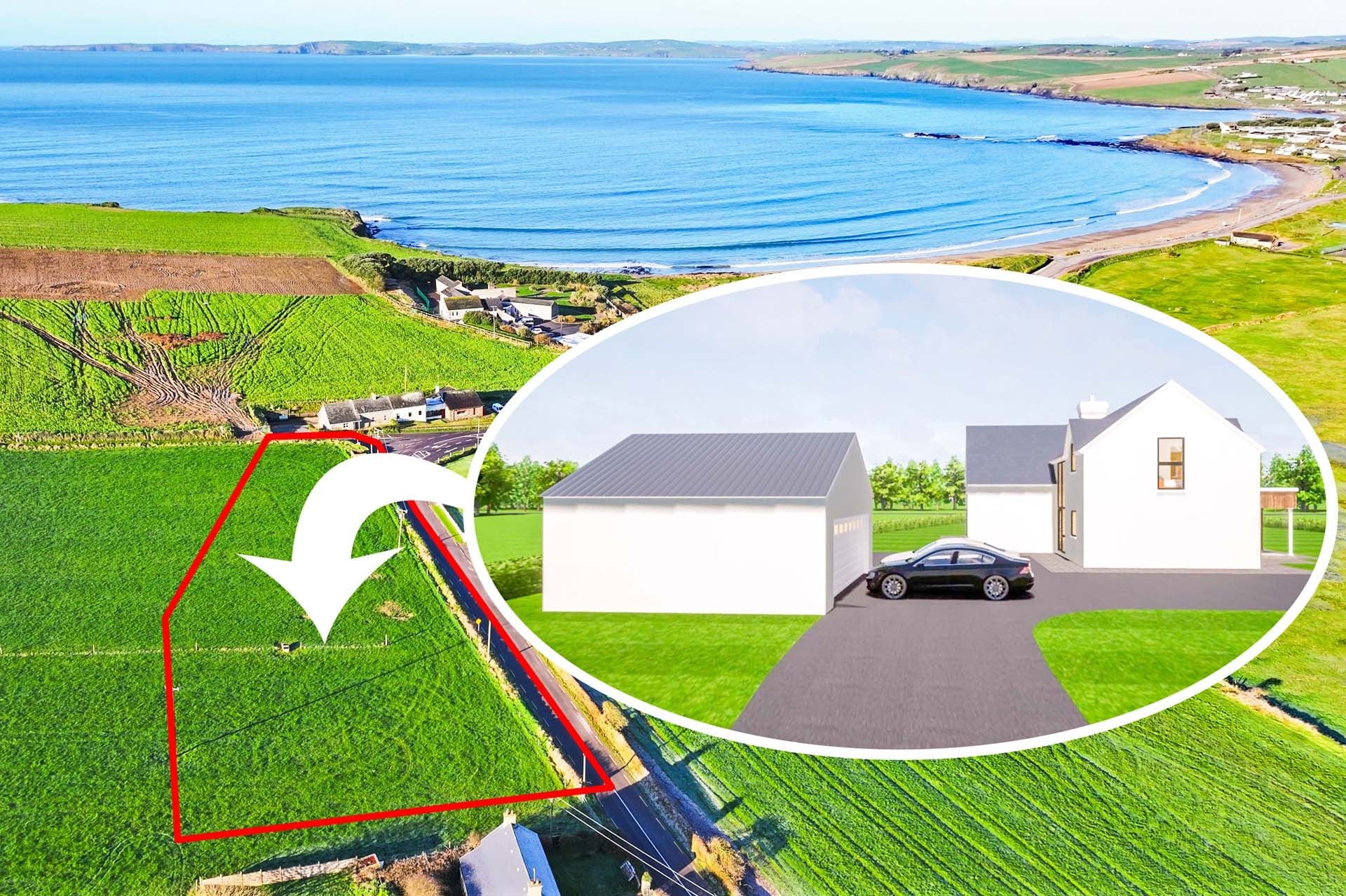 A spectacular site of 1.13 acres with full planning permission for an architecturally designed, 4-bed family home with a double garage and no local housing need requirement, in a stunning location just footsteps from the beach.
