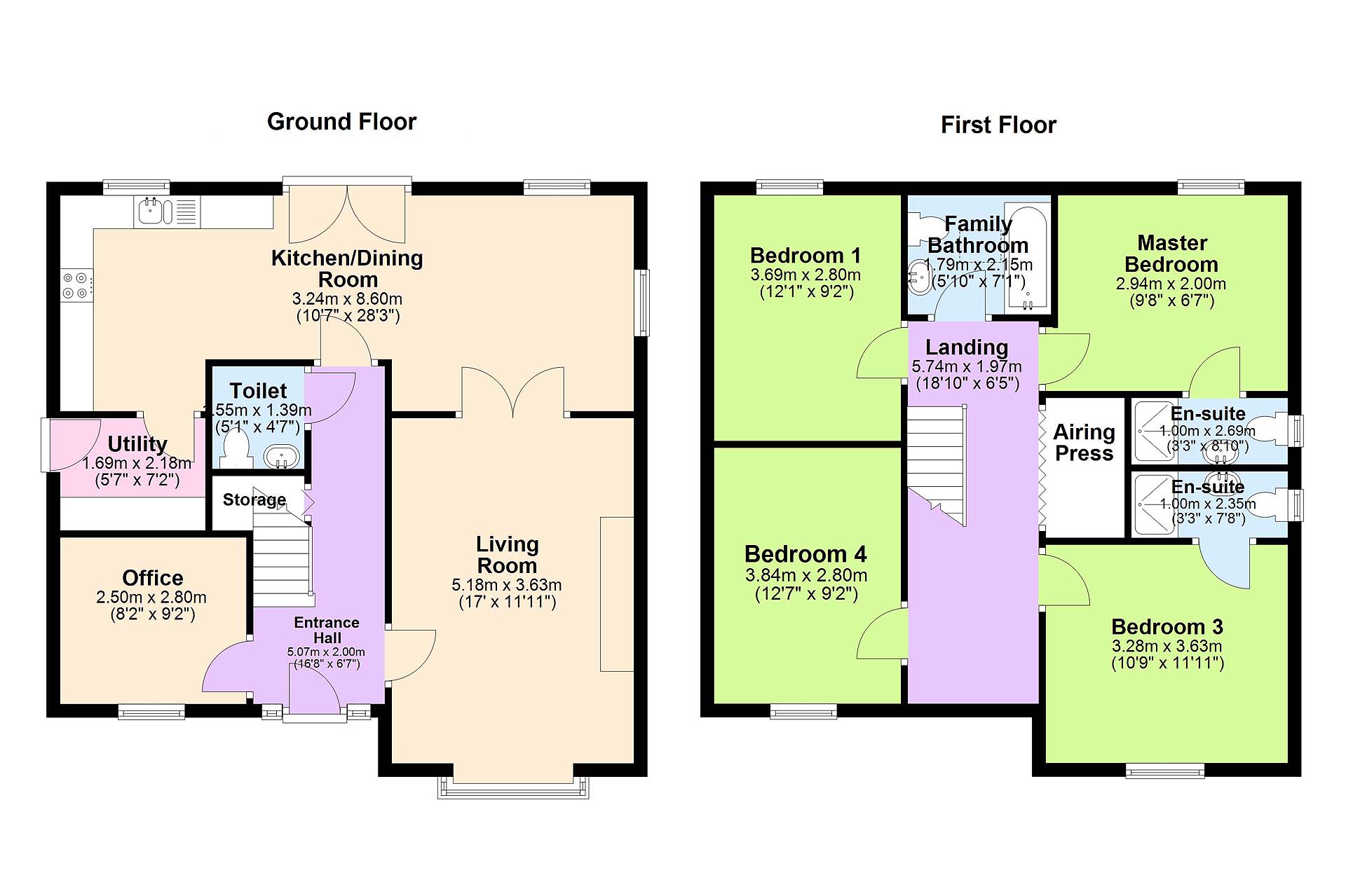 Upstairs, the four beautifully appointed bedrooms offer a tranquil retreat, with two benefitting from en-suite bathrooms. The main bathroom is fully tiled with both a bath and shower.