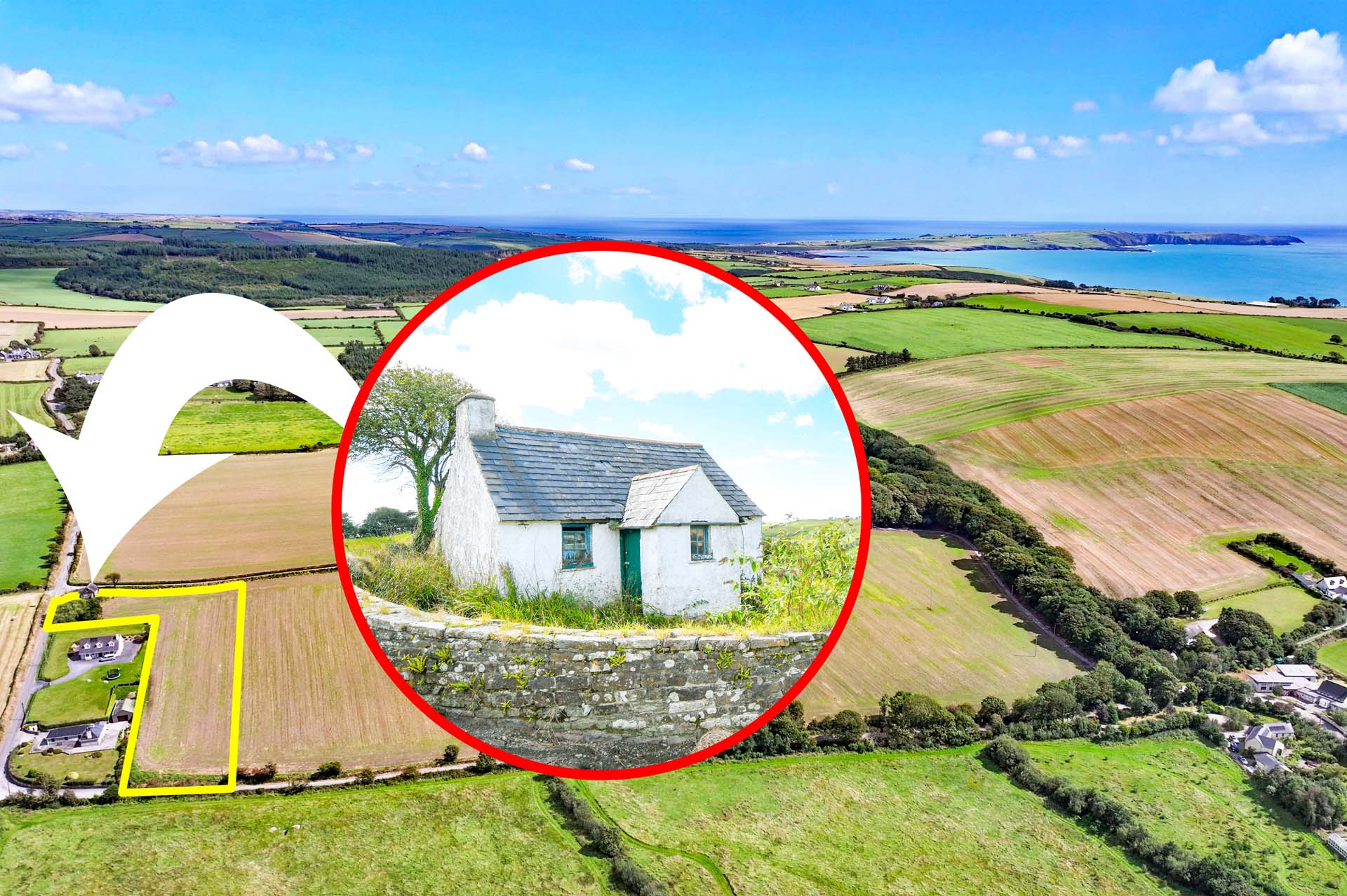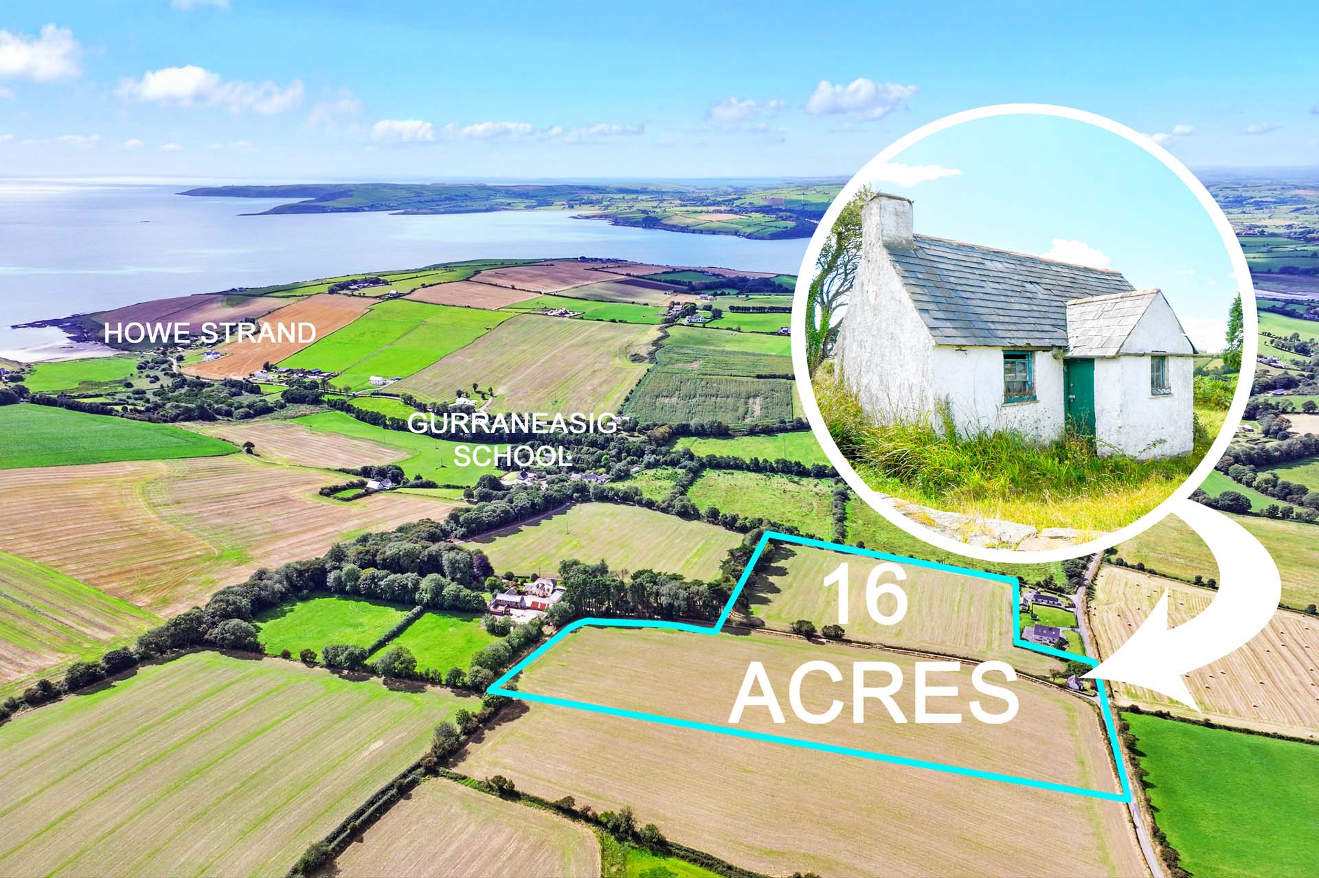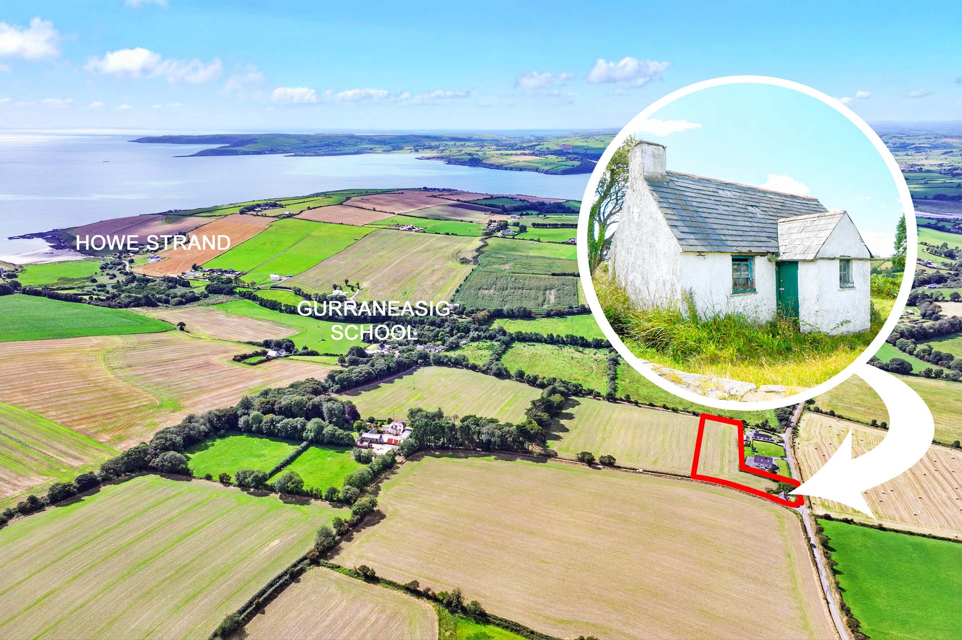 A derelict Cottage to Restore, a Setting to Treasure. Two acres by the sea in the heart of West Cork, with planning potential and a coastal lifestyle to enjoy.